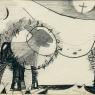 The Beast presents a mysterious, dreamlike vision of an animal form tethered within a space that seems to shift between interior and exterior. The setting evokes both a stage-like backdrop and an open landscape, its ambiguity deepened by a field of white that silhouettes the creature and isolates it from its surroundings. The animal itself remains indistinct, as if summoned from the subconscious, while flame-like radiations halo its form, suggesting an aura of energy. Above, celestial motifs, a cross within a full moon to the right and a crescent moon to the left, introduce mythological or spiritual overtones. At once symbolic and enigmatic, the work reflects Gatch’s gift for uniting abstraction, representation, and poetic mystery.