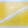 With a strong diagonal structure highlighted by subtle value shifts and crisp geometries, Untitled, 1977 is a prime example of Anuszkiewicz’ mature work from a productive decade in which he mounted seven solo exhibitions. You may be tempted to call this painting abstract but as a colorist Anuszkiewicz’s concerns about figure-ground movement are more akin to traditional painting, both of which share a reliance on the illusion of depth through manipulation of color relationships. Constructed of opposing 60 degree triangles in subtly shifting yellow, pink, and white, Anuszkiewicz optically plays visual games between the diagonal, horizontal, and vertical bands that overlay the base color.