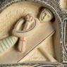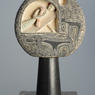 In the context of the turbulent times in which Lambert-Rucki lived his sculptures of mother and child can be seen as symbols of hope and resilience. Beyond the biblical story, here in Nativity they represent the enduring strength of the human spirit and the promise of a better future, even in the face of adversity and hardship. On the verso of this work, Lambert-Rucki carved a variation of a Christogram with Alpha and Omega symbols. This monogram forms the abbreviation for the name Jesus Christ while the Alpha and Omega are the first and last letters in the Greek alphabet. Together the artist may have been signifying Christ’s eternal and divine nature – a powerful visual representation of God’s divinity and Christ’s eternal existence.