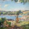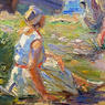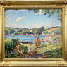 De Glehn is perhaps most famous for his association with John Singer Sargent. Born in Sydenham, England in 1870, he received his training in the Royal College of Art in South Kensington and later at the Ecole des Beaux-Arts in Paris where he studied under Gustave Moreau and Elie Delaunay. De Glehn met Sargent in 1895 through Edwin Austin Abby during his first visit to America when Sargent was working on murals in the Boston Public Library. After further work in Europe, de Glehn returned to the US in 1903 and married Jane Emmet, a member of a Boston family of painters and cousin to the novelist Henry James. Shortly afterwards the newly wed couple returned to Europe with Sargent where they embarked on many years of travel throughout Spain, Switzerland and Italy. Sargent would become renowned in the years to come. There was always a circle of other painters and artists around them, with de Glehn and Sargent always at the center, usually painting side by side from location to location, often using Mrs. De Glehn or Sargent’s sisters as models. These years were very productive and successful for de Glehn who built an impressive body of work, and always in the company of painters of the caliber of Sargent whose influence and experience were ever-present.