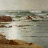 From 1856 until 1867 William Trost Richards was best known for his still life and landscape paintings which were executed near his home in Germantown, Pennsylvania. Trained in metalwork and then as an illustrator his pictures were flawless and almost slavish photographic renditions of his subjects. It was in 1866 while studying abroad in England that Richards became fascinated with a storm at sea and began to study the structure of waves - their rise and fall - as well as how such a storm affected the water and the shoreline In the early 1870's, William Trost Richards returned from his studies abroad and purchased a summer home on Conanicut Island, just off the coast of Newport, Rhode Island.  Here he began to turn his attention solely to maritime subjects and as a result he began to develop his true appreciation for the ocean. Living in almost complete isolation with continuous access to the sea, Richards completed numerous paintings. It is these marine seascapes for which Richards is best remembered today and which make him one of America's truly great artists.