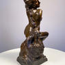 In Neoclassical sculpture, the idea of pathos was often used to communicate moral lessons or philosophical themes, encouraging the viewer to reflect on virtue, sacrifice, and the human condition. One of d'Orsi’s notable works is his Pathos, which depicts a young nude woman perched on a rock. The composition emphasizes the delicate balance between strength and vulnerability, as the figure sits with a poised yet introspective expression suggesting both grace and a quiet, contemplative sorrow. The rock on which she rests serves as both a physical and metaphorical foundation, grounding the figure while adding a sense of emotional depth to the work. The smooth, polished surface of the bronze contrasts with the textured rock, highlighting the artist’s mastery in rendering both the human body and the natural world with lifelike precision.
