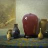 Ernest Albert was a true Connecticut landscape artist, devoted to depicting the different seasons in an Impressionist manner. Albert was part of just a handful of painters, native to Connecticut, and making up a very small but important movement in American Impressionism. In 1941 he had his last major one-man exhibition at Rockefeller Center in New York. It is around this time we believe he painted the still lifes which were so striking in presence and quality. Influenced by Japonsim, he probably felt the lure to compliment his landscape work with these still lifes that afforded him the chance to paint more tightly and show off his technical abilities. At this later date in his career, Albert most likely felt it soothing and fulfilling to sit and study these still lifes, like our Oriental Still Life Also. Albert had long been a part of the Connecticut school of artists and would have been highly familiar with Emil Carlsen’s still lifes which were highly regarded by anyone critical within artistic spheres. Albert’s still lifes are clearly influenced by Carlsen’s approach but Albert brings to his canvases more color and brilliance. Carlsen was a bit of a monochromatic painter and Albert, while often a sensitive and pastel oriented color user, also saw this as an opportunity to do richly jewel toned colors that existed in the pottery.