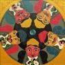 Chackrobarty’s artistic approach often challenges traditional notions of identity and form, creating a constant visual flux and blending contemporary and traditional elements. Here in Untitled, Chakraborty uses a mandala as the main component of his composition. Mandalas – “circle” or “sacred center” represent the universe, wholeness, unity, infinity and timelessness. Chakraborty confronts traditional notions of identity and form by using this layered imagery that invites storytelling through a mosaic-like pattern with mythic analogies. Using rich color and detail to depict these figures, the artist shifts the narrative and invites the viewer to contemplate the interconnectedness between each image and the whole composition.