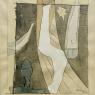 Interior brings together many of Gatch’s signature concerns with form, texture, and symbolism. The composition is structured through fine but definitive lines that divide the plane into distinct sections, recalling the logic of collage. Within these compartments, recognizable elements emerge: a silhouetted figure, a dangling light bulb, and a serpentine white form evocative of another figure. Patterns and tonal shifts complicate the reading of figure and ground, creating a layered, ambiguous space where abstraction and representation overlap. The result is a dynamic and evocative image one that embraces the tension between order and mystery.