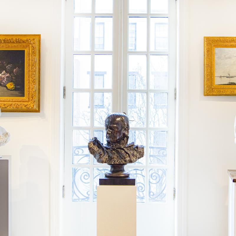 Our exhibition features select sculptures reflecting our interest in 19th century American and European works from the 19th century forward. Included are works on paper intermingled with paintings we felt complimentary to sculptures on view.